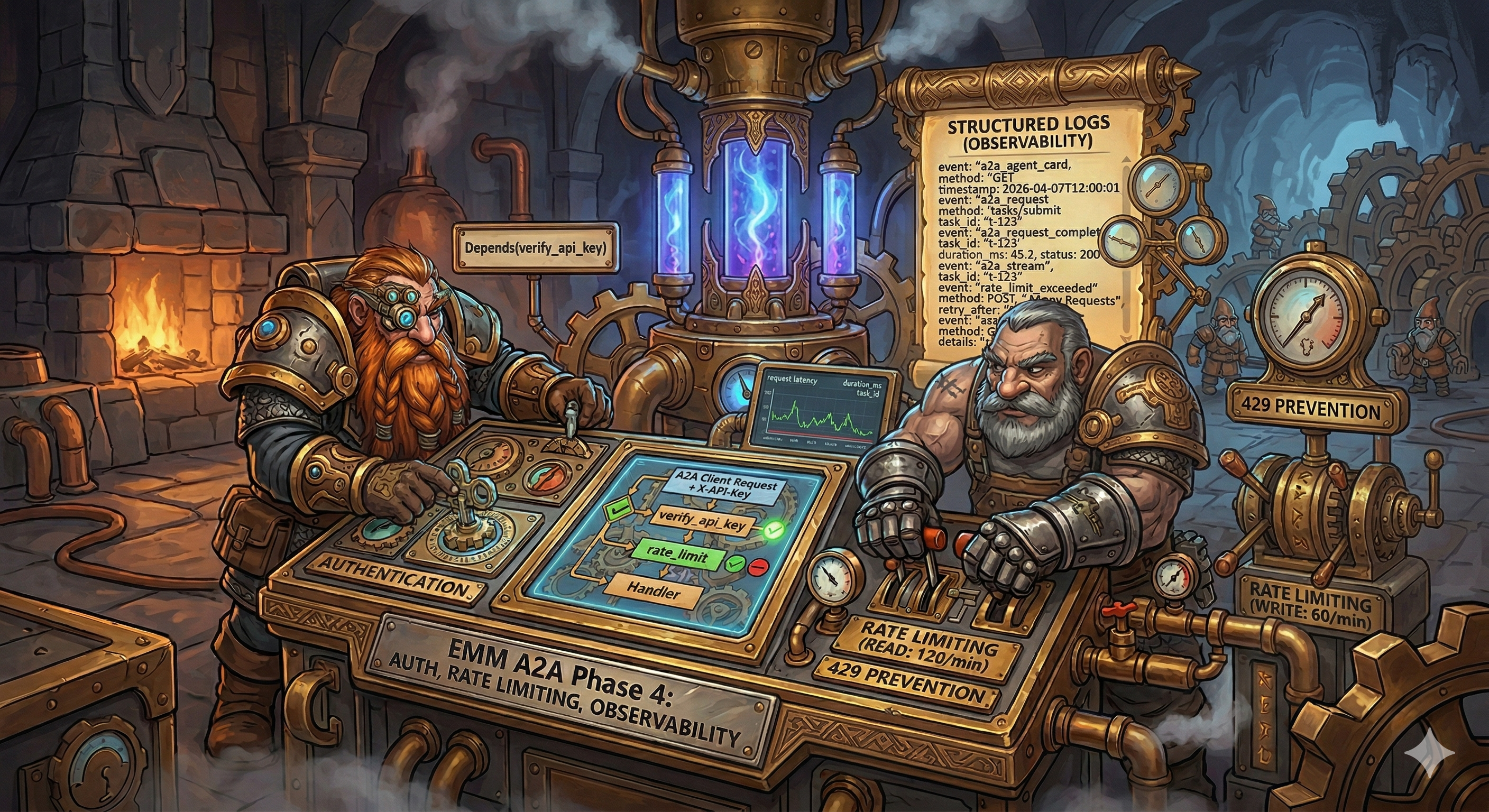 EMM A2A Phase 4: Auth, Rate Limiting, Observability
