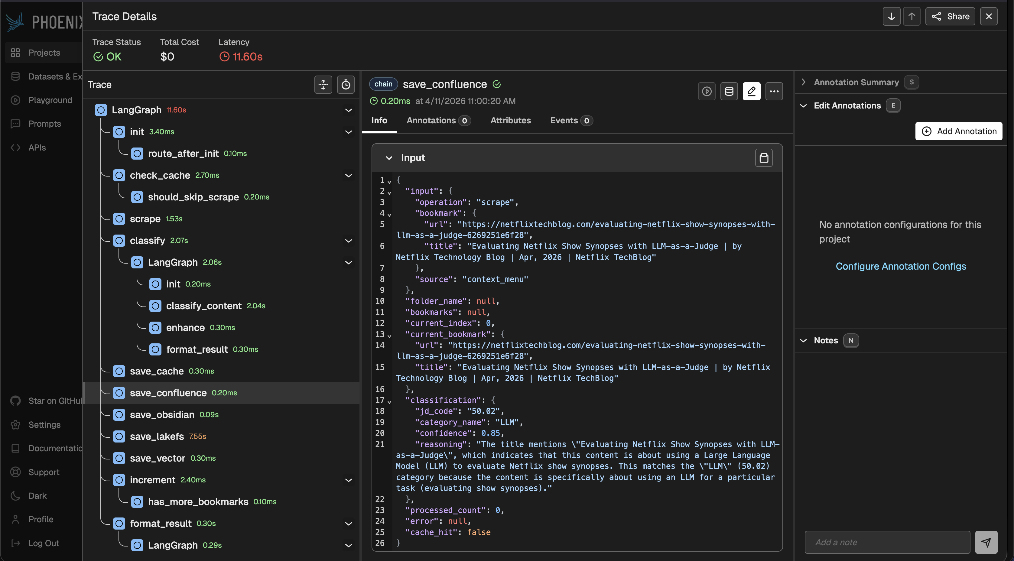 • Not a replacement for logs and alerts. Phoenix shows an execution trace, not business metrics or SLOs. LangSmith in the project stays its own world if you already use it. Phoenix doesn’t “replace” LangSmith by itself; it’s another channel if you turn it on.