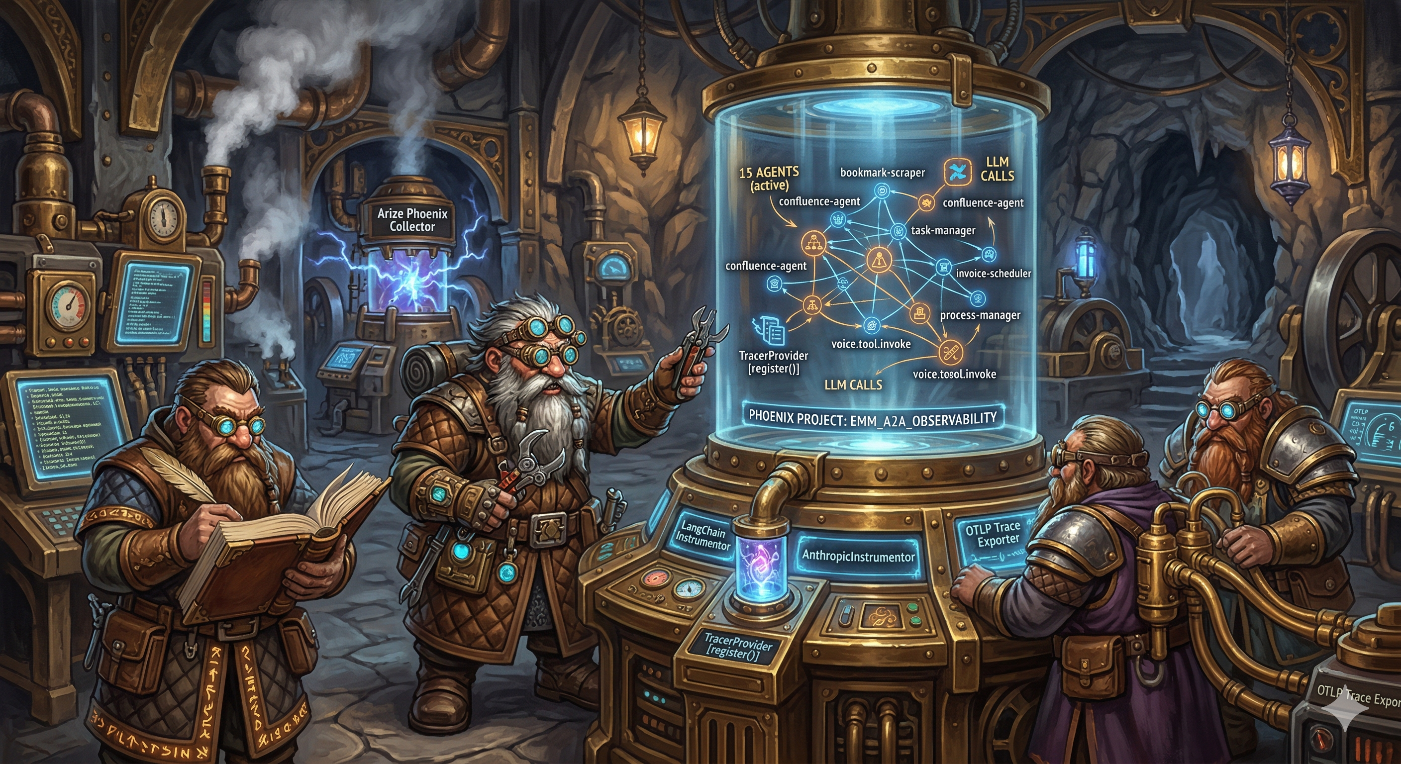 Here’s what I did: wired Arize Phoenix as a trace sink on top of OpenTelemetry. OpenInference for LangChain picks up LangGraph (ainvoke, invoke, astream_events) without editing every agent. I also enable AnthropicInstrumentor: the PM report button runs process-manager, which calls anthropic.messages.create directly, not via LangChain. LangChain-only patching never produced an LLM span for that path.